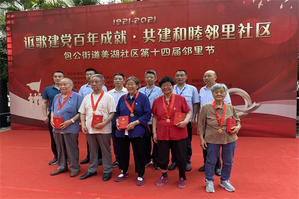 美湖社區從2004年至今已成功舉辦了十四屆鄰里節。每屆鄰里節,居民們都可以根據自身特長愛好以“臺前演員”“幕后先鋒”“運動健兒”或者“棋牌高手”等不同身份參與到這場鄰里盛宴中來。通過鄰里節的舉辦,豐富了居民文化生活,密切黨群關系,居民們在一起分享身邊事,增進彼此了解,促進培養和諧新鄰里,傳遞社區建設正能量。2021年美湖社區黨總支又成功舉辦包公街道“謳歌建黨百年成就·共建和睦鄰里社區”暨美湖社區第十四屆鄰里文化藝術節。