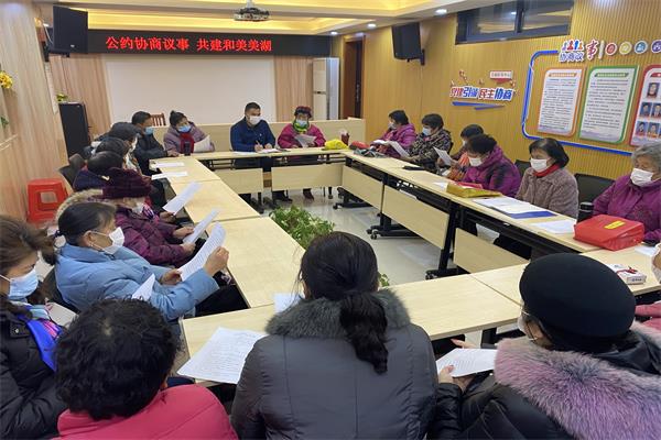 在日常服務過程中,社區工作人員發現,很多居民經常會就同一個問題多次咨詢,但是居民們的意見并不統一,事情處理推進很困難。在這樣的背景下,社區協商議事會以及婦女議事會平臺就應運而生了。社區建立了“一核多方、共治共享”協商機制,即以社區黨總支為“核心”,以社區居委會、社區志愿服務聯盟以及物業、社會組織等作為執行“多方”。通過集中議事、走訪議事、上門議事及微信議事等4類方式開展活動。社區推進多方溝通交流,不僅使社區各方“合成一股力、擰成一股繩”,更有效推動了社區治理合力的形成。2021年,美湖社區就通過“兩類協商議事”平臺召開議事活動30余起,成功化解鄰里矛盾、大小問題50余件,并推進了小區停車位、環境整治、居民公約等多個方案的出臺。有效增強了社區凝聚力,提升了居民的幸福感、滿意度。