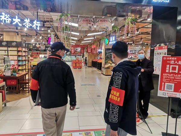 針對轄區公共場所人員流動密集的問題,機關黨員主動行動,常態化督導轄區商超、藥房、賓館、寫字樓等公共場所疫情防控措施,要求經營單位務必做好顧客體溫檢測、來客登記、清潔、消毒、通風等措施,加強疫情防控知識宣傳開展聯防聯控,確保防疫措施落實到位。