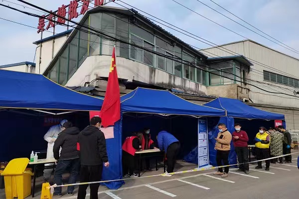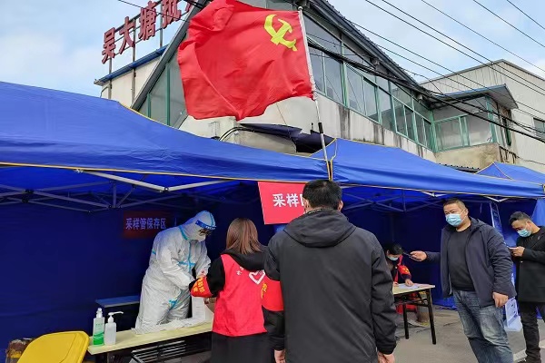 在黨員志愿者的宣傳動員下,越來越多的居民、重點場所工作人員來到核酸檢測點,按照間隔一米線距離有序排隊,進行檢測。同時告知他們在日常生活中,不扎堆、不聚集、強防護,社區上下齊心協力,共同筑牢疫情防控屏障。