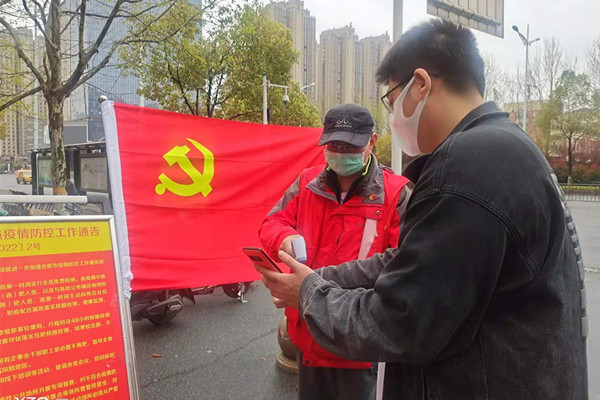 “您好,請掃一下健康碼和行程卡,在這里測量體溫……”在竹園社區竹園小區門口,居民樓棟長武云飛向過往的居民一遍遍地叮囑道。武云飛是煙墩街道竹園社區竹園小區的一名樓棟長,也是小區“紅竹護衛隊”的副隊長。平時,他總是帶領護衛隊在小區內開展文明養犬、安全隱患排查等志愿服務。近日疫情防控形勢嚴峻,他帶領護衛隊的幾個人主動申請到小區防疫卡點執勤。