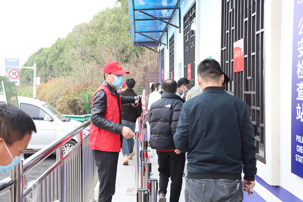 根據疫情發展的嚴峻形勢,按照市防指的要求,本著“屬地管理”的原則,煙墩街道自2022年1月17日起,在方興大道高速收費站設置免費核酸檢測采樣點,迅速啟動核酸采樣和疫情防控工作。核酸采樣點實施五位一體:屬地街道、公安交警、交通運輸、衛健部門及高速公路(國省干線)經營單位聯合協同配合,后期增加了市、區下沉的黨員干部,為了充分發揮黨組織在疫情防控中的戰斗堡壘作用和廣大黨員干部的先鋒模范作用,經街道黨工委批準組建臨時黨支部,保障核酸檢測采樣點24小時運轉,切實做到“不漏一車、不漏一人”,筑牢疫情防控“外防輸入”的鋼鐵屏障。