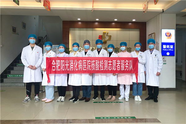 合肥陽光消化病醫院黨支部組織黨員和入黨積極分子成立核酸檢測志愿服務隊,為核酸檢測點提供采樣保障。志愿者們每天穿著防護服,臉上被防護面罩勒出深深的印痕,大家沒有怨言,依然堅守崗位,為每一位前來做核酸的群眾做好服務。核酸檢測志愿服務隊的每一位成員努力練習技術,隨時準備應對全員核酸檢測。