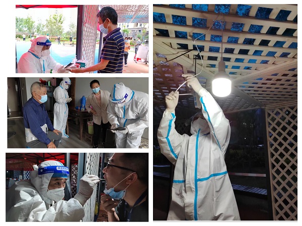 核酸采樣忙,巾幗黨性紅。許燕,是陸集社區黨總支委員,也是一名巾幗志愿者。在4月22日開展的全員核酸檢測工作中,從黎明破曉到烈日炎炎,再到夜幕低沉、午夜降臨,她恪守采樣登記崗位,連續在崗十幾個小時。