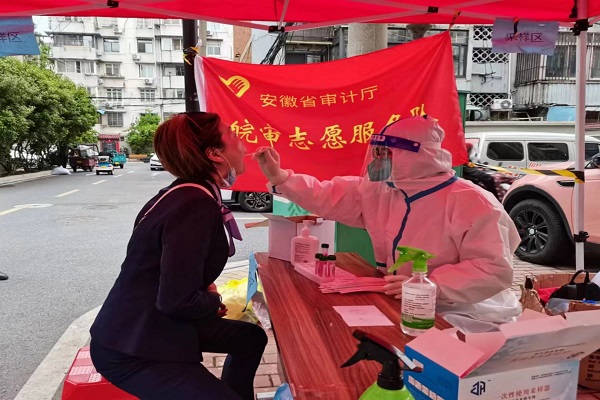 早晨7點(diǎn),核酸檢測(cè)工作正式啟動(dòng)。“皖審”志愿者們正式分工協(xié)作、輪流上崗,分別在核酸采樣崗、掃碼登記崗、秩序維護(hù)崗、“掃樓”引導(dǎo)崗等開展工作,歷時(shí)10個(gè)小時(shí),協(xié)助社區(qū)為1500余名居民進(jìn)行了核酸采樣。省廳機(jī)關(guān)300多人均按要求完成了核酸采樣。