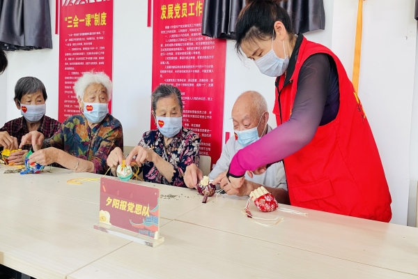 活動前幾天,聯歡會的準備工作便緊鑼密鼓地開展起來,熱心居民志愿者做活動背景墻的布置等前期準備工作。活動現場,老人和孩子們圍坐在一起,飽含著美好期許專注地制作香囊,期間互相交流,其樂融融。