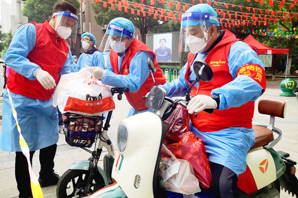 小區(qū)臨時管控期間,楓丹園的“紅色小管家”化身“運(yùn)輸員”、“保障員”,自發(fā)組成了一支“配送小分隊”,以無接觸配送的方式,打通了居民生活物資保供的“最后100米”。他們有序地對居民緊需的藥品等生活用品進(jìn)行消殺,并根據(jù)標(biāo)注信息,配送到居民家門口。早6點(diǎn)到晚6點(diǎn),“配送小分隊”每人每天來來回回得跑30多趟,精準(zhǔn)高效滿足近2000戶家庭的生活物資需求,他們是居民眼里的“騎行俠”,為打贏疫情防控攻堅戰(zhàn)貢獻(xiàn)志愿力量。