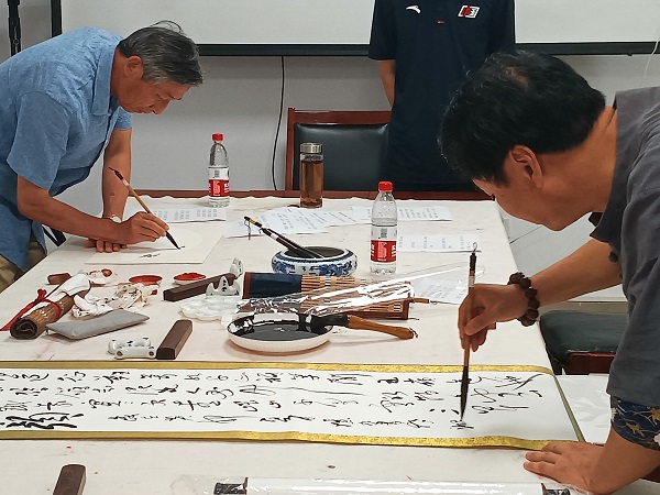 不忘初心跟黨走,書畫贊美新時代。黨員們在社區黨員室,以筆代言,以紙為媒,揮毫潑墨,圍繞廉潔自律、家風文化、愛黨愛國等即興創作了多幅書畫作品,傳承優秀文化,弘揚主旋律。范憶九更是激情寫下《七律·長征》,以此表達對黨的深厚情誼。本次創作的作品,全部作為禮物贈送給社區黨委,進一步發揚好黨的優良傳統,賡續好黨的精神血脈,唱響愛國主義的主旋律。