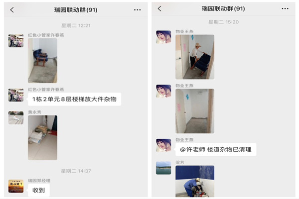 強化“三項措施”重管理。每個微信群指定專人負責,制定群相關紀律,工作人員在群里亮明身份,嚴把加入關,禁止發送推銷廣告和與工作無關的鏈接。三級微信群管理員及時將二級群內發布的各類方針政策、暖心資訊、工作動態等內容轉發至三級群,便于居民第一時間知曉相關信息;居民反映的問題,各微信群負責人第一時間答復,涉及的工作人員及時跟進,三級群管理員對無法解決的問題、熱點話題反饋至二級群;居民區工作人員、物業公司負責人負責解答三級群管理員上報的問題,無法解決問題反饋至二級群管理員處,由二級群管理員上報給瑞園黨委書記。瑞園黨委對微信群進行監督,收集群眾普遍關心、關注的和不理解、不滿意的問題,正確引導社會輿論,有效推進工作開展。