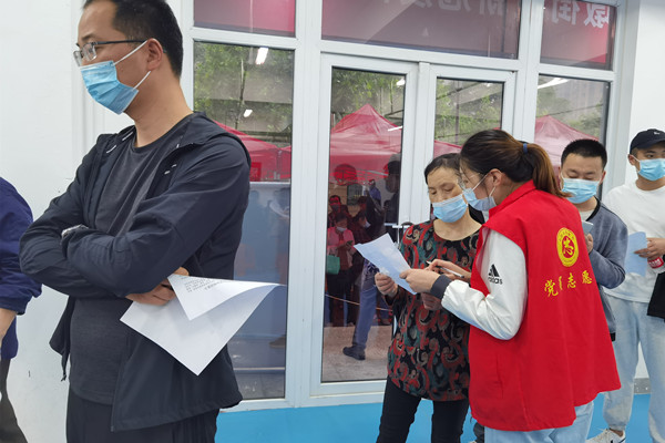 5月14日起,疫苗接種現場排起了長龍,在疫苗接種點,社區工作人員認真負責、不厭其煩,盡管嗓子喊得沙啞,依然堅守崗位,一身“志愿紅”成了現場最靚麗的風景。接種點外,竹園社區黨支部副書記倪良云負責秩序維護、答疑解惑等工作,提醒居民需要注意的事項,緩解居民焦慮的心情。為保障接種工作有序,她還熱心的為等候區的居民測量血壓。